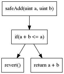 1function safeAdd(uint a, uint b) pure internal returns(uint){2    if(a + b <= a){3        revert();4    }5    return a + b;6}The corresponding AST is shown in: